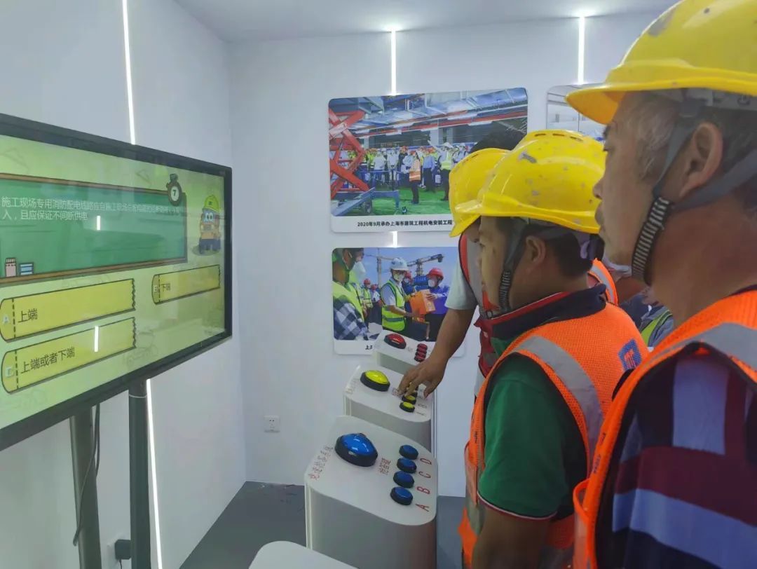 在随后的VR体验馆内,通过按键问答,沉浸式的VR交互体验更增进工人对安全操作的理解。