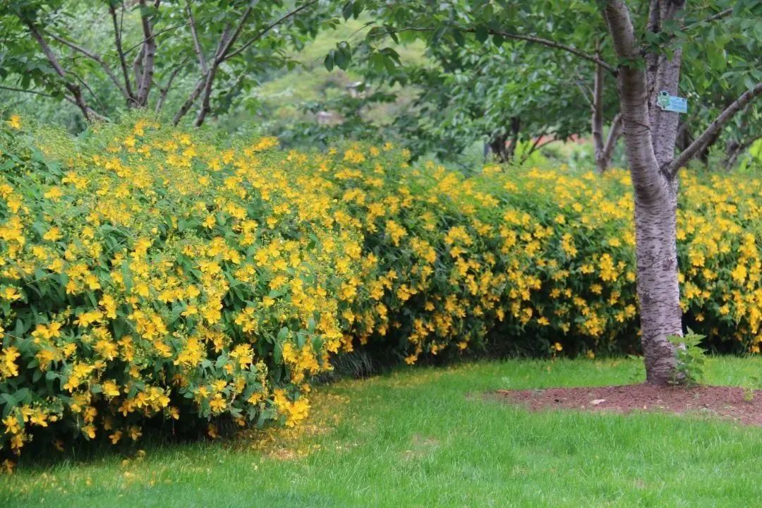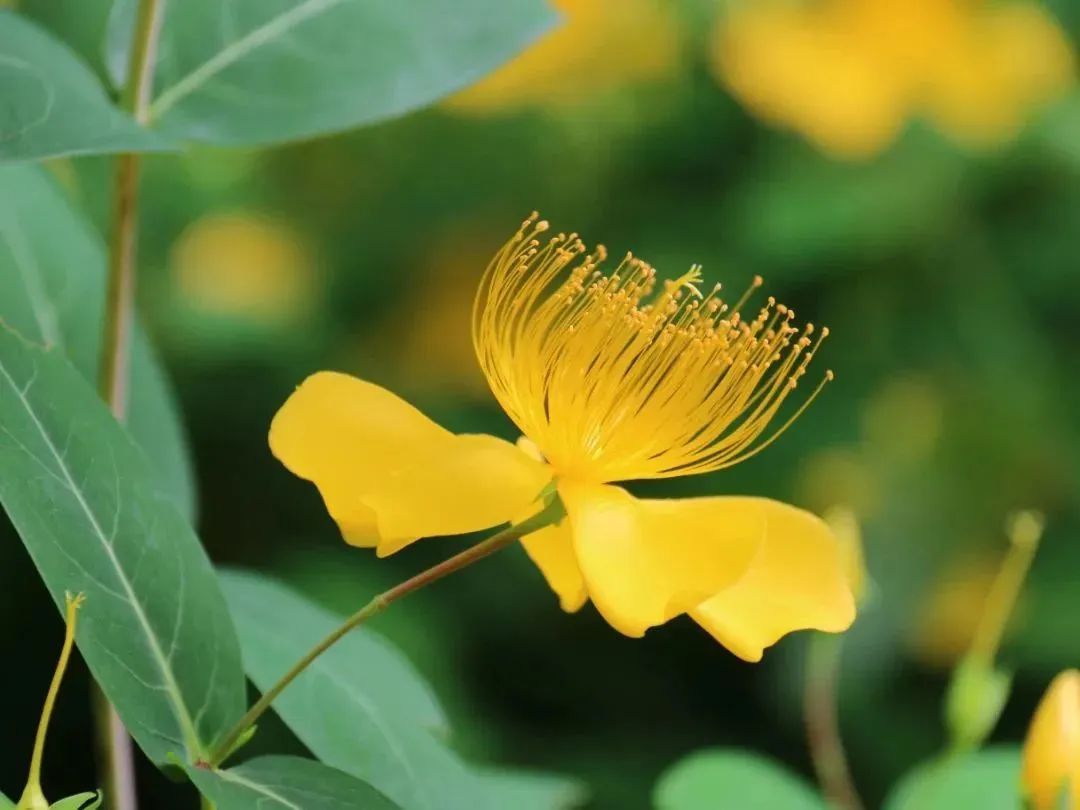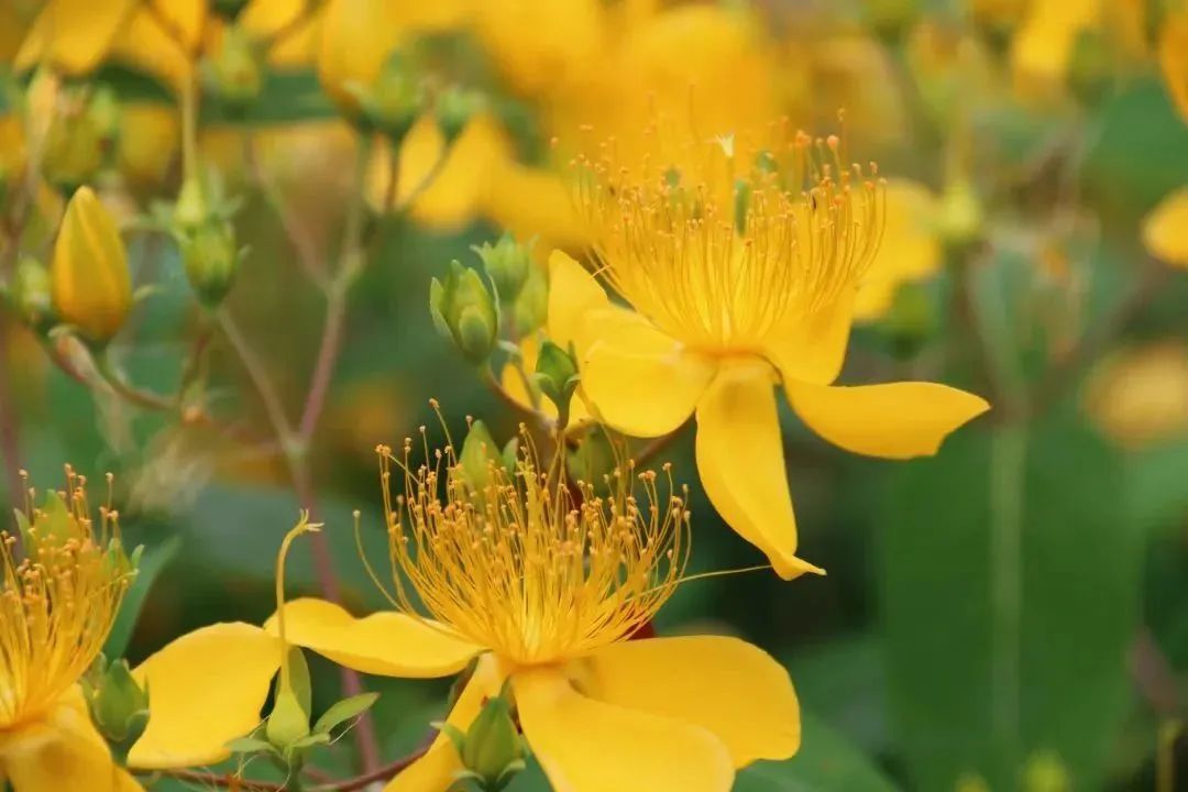 为藤黄科金丝桃属植物,半常绿小乔木或灌木,小枝纤细且多分枝,花色金黄,其呈束状纤细的雄蕊花丝也灿若金丝,且因此而得名。