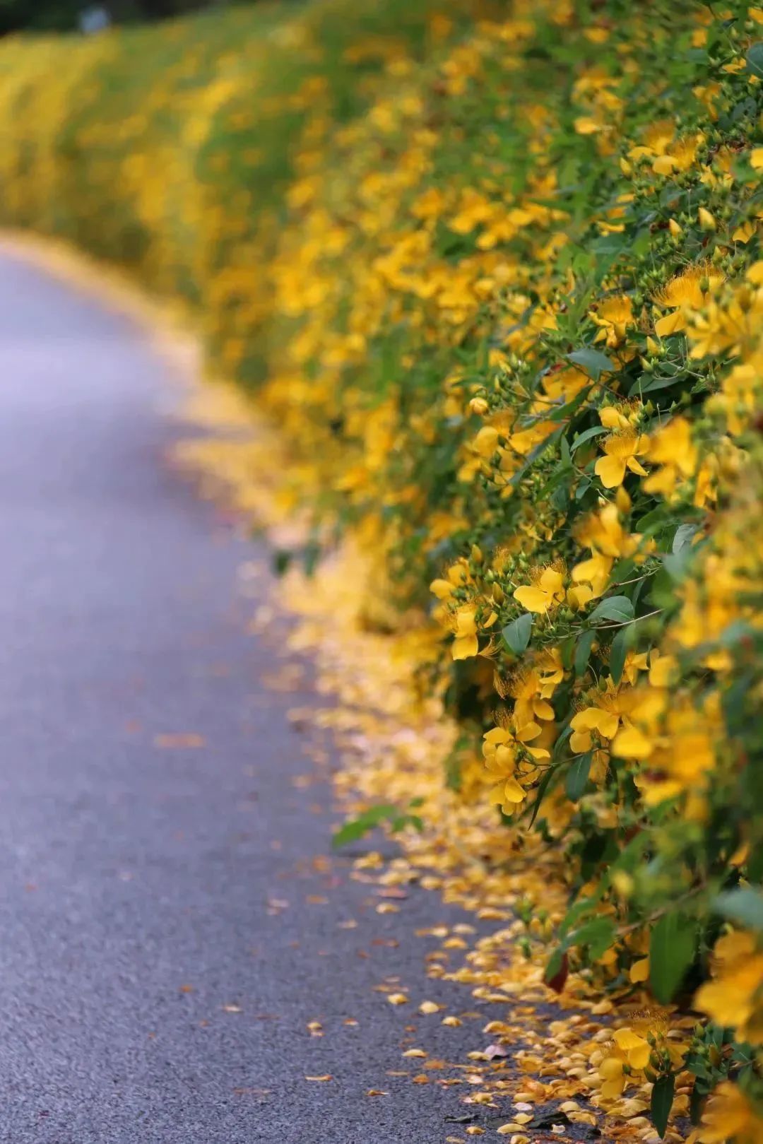 色丝乱吐江毫出,金缕低萦舞带斜。成片的金色花篱正绽放在彭浦四季公园,不要错过这份夏日盛景。