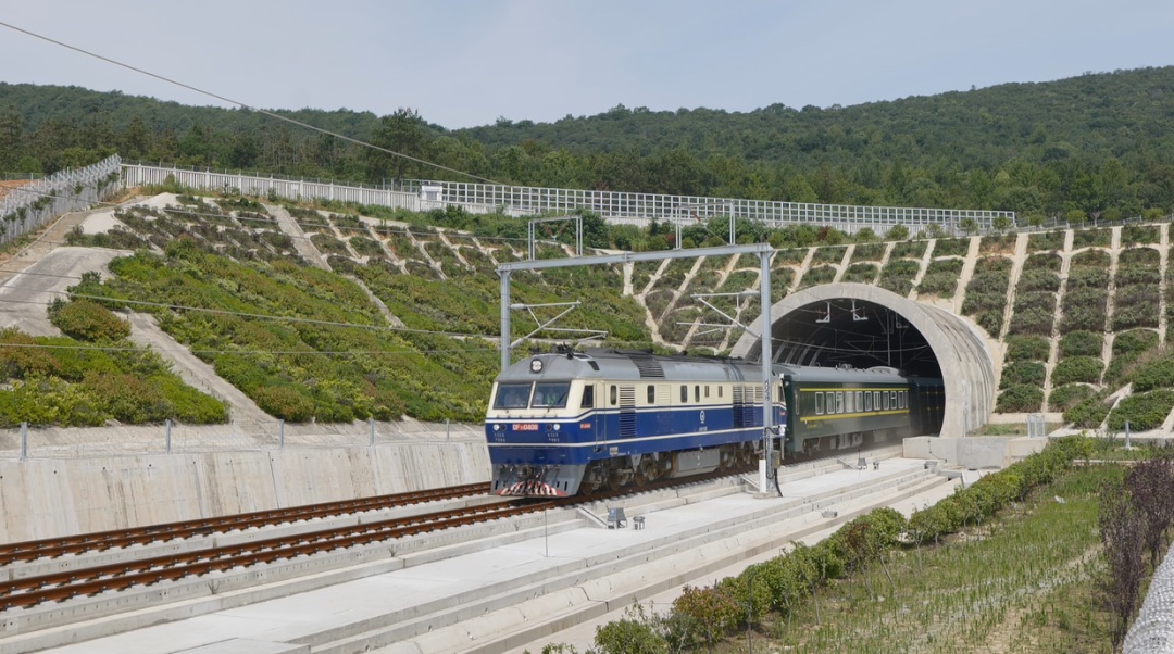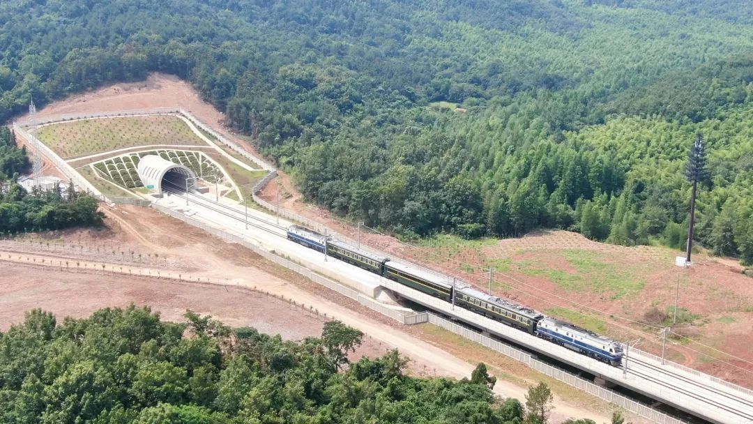 试验列车从沪宁沿江高铁阳山隧道驶出 江健 摄