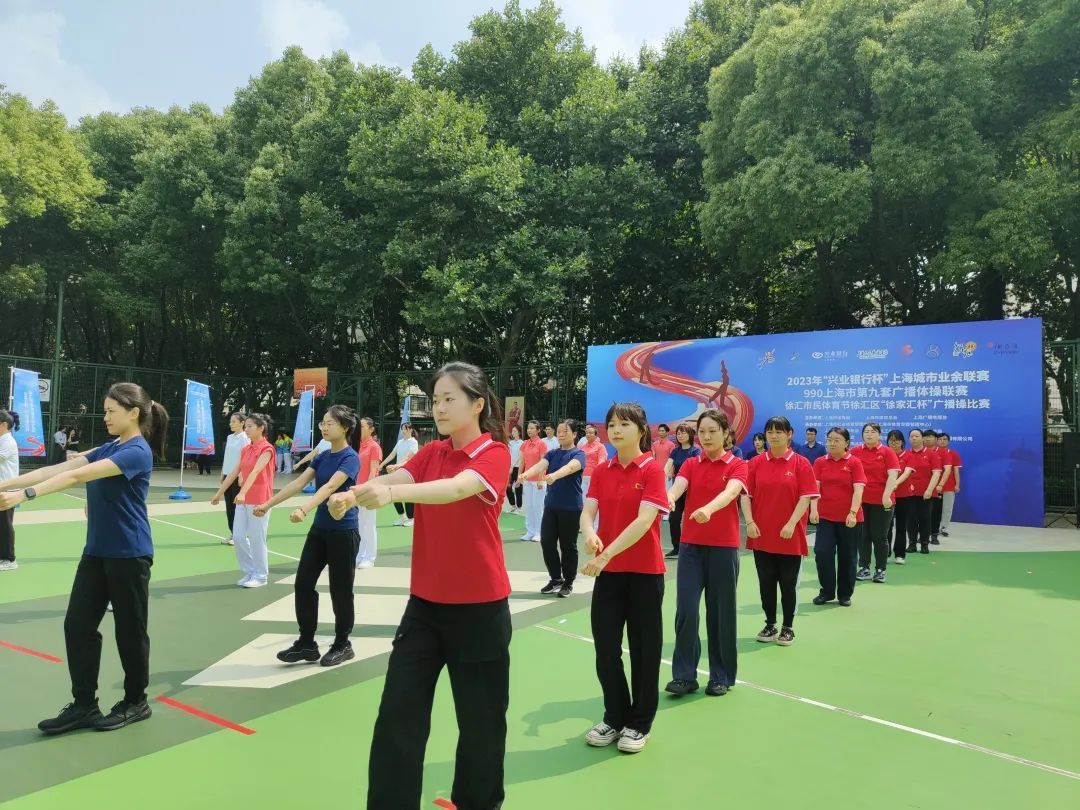 “第九套广播体操,现在开始……”伴随着熟悉音乐和律动节拍,赛场外围满了来“看热闹”的市民,徐汇市民体育节徐汇区“徐家汇杯”广播操比赛在阿迪达斯徐家汇公园篮球场正式拉开序幕。