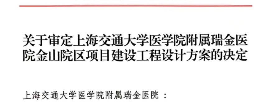 上海交通大学瑞金医院金山院区项目取得重大进展,项目继“交地即交证”之后,于今天(6月15日)取得设计方案的批复。设计方案是项目前期工作计划的核心部分,项目设计方案顺利获批,为项目按期推进奠定坚实的基础。