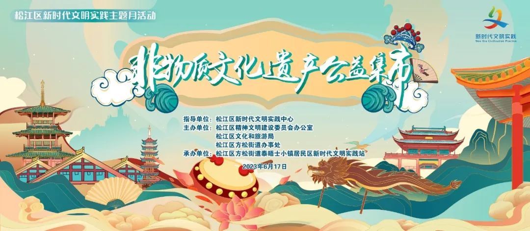 每年6月的第二个星期六是文化和自然遗产日。为了进一步传承弘扬中华优秀传统文化,更好满足人民日益增长的精神文化需求,结合松江区新时代文明实践主题月活动,由松江区新时代文明实践中心指导,松江区精神文明建设委员会办公室、松江区文化和旅游局、松江区方松街道办事处主办,松江区方松街道泰晤士小镇居民区新时代文明实践站承办的“非物质文化遗产公益集市”将在6月17日上午于泰晤士小镇举办。