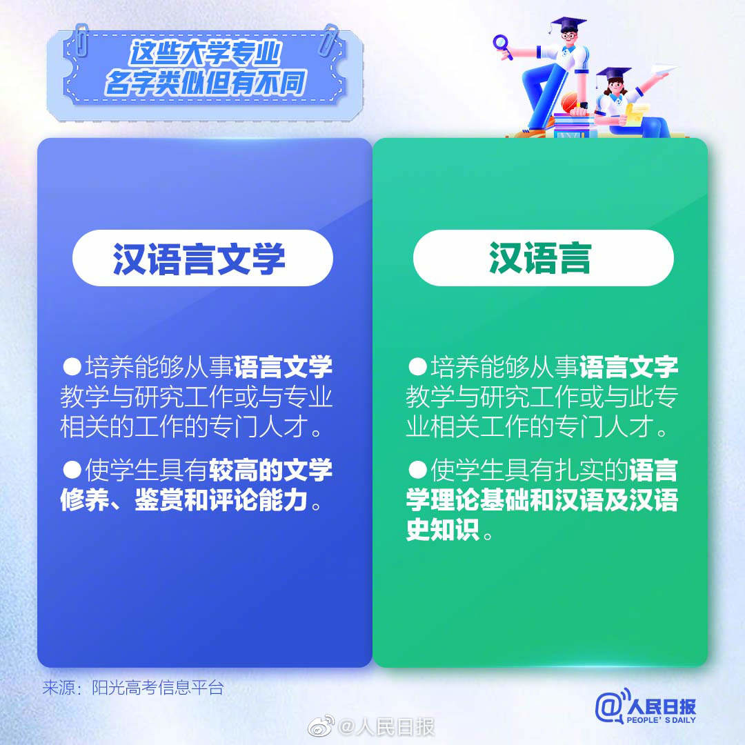 高考后,志愿填报逐渐提上日程。报志愿时,很多专业名称看起来相似,但实际学习内容和培养目标大不相同。汉语言文学和汉语言有什么区别?统计学和经济统计学是同一类学科吗?更多,看图了解↓↓↓