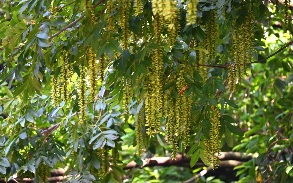 如流苏般垂坠而下的是枫杨的果实,一串串优美垂悬,在阳光下闪着光。