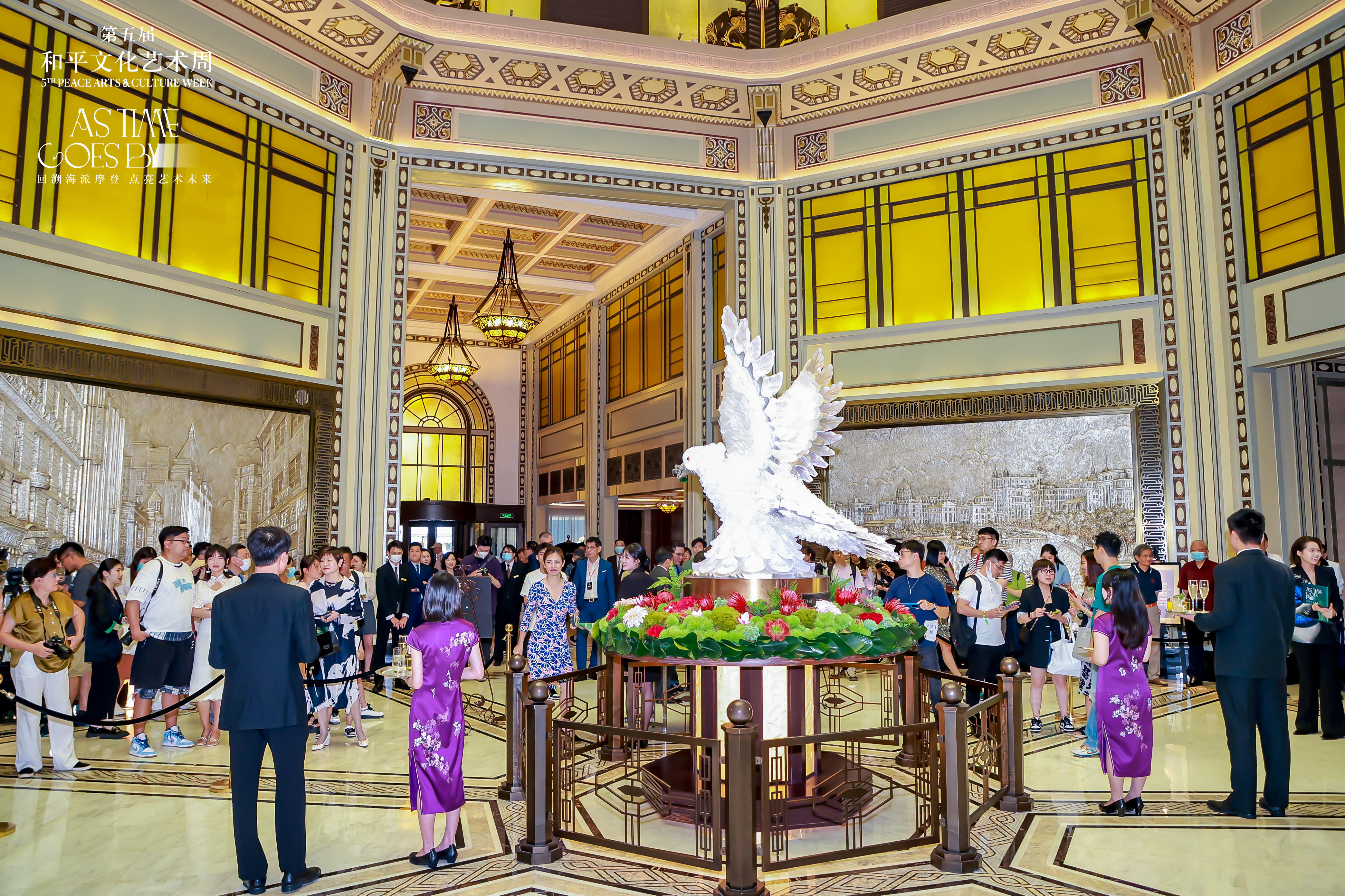 6月15日下午,在上海和平饭店内,第五届“和平文化艺术周”拉开帷幕。本次艺术周主题为“回溯海派摩登,点亮艺术未来”,以科技赋能艺术,让复古追赶潮流,让和平饭店的传奇艺术展现出生机勃发的别样魅力。