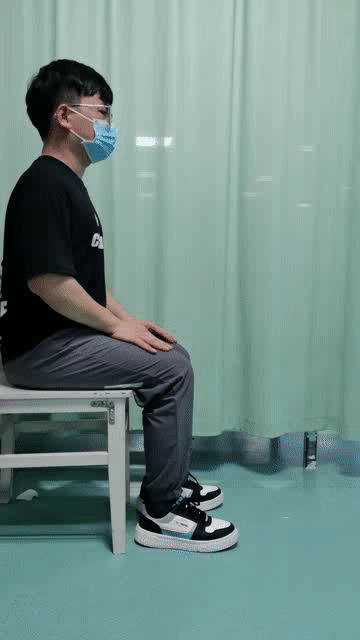 坐在凳子上,抬腿并用力勾脚尖,坚持抬腿5秒,放松2秒,换另一边重复进行,每天练习50-60次。