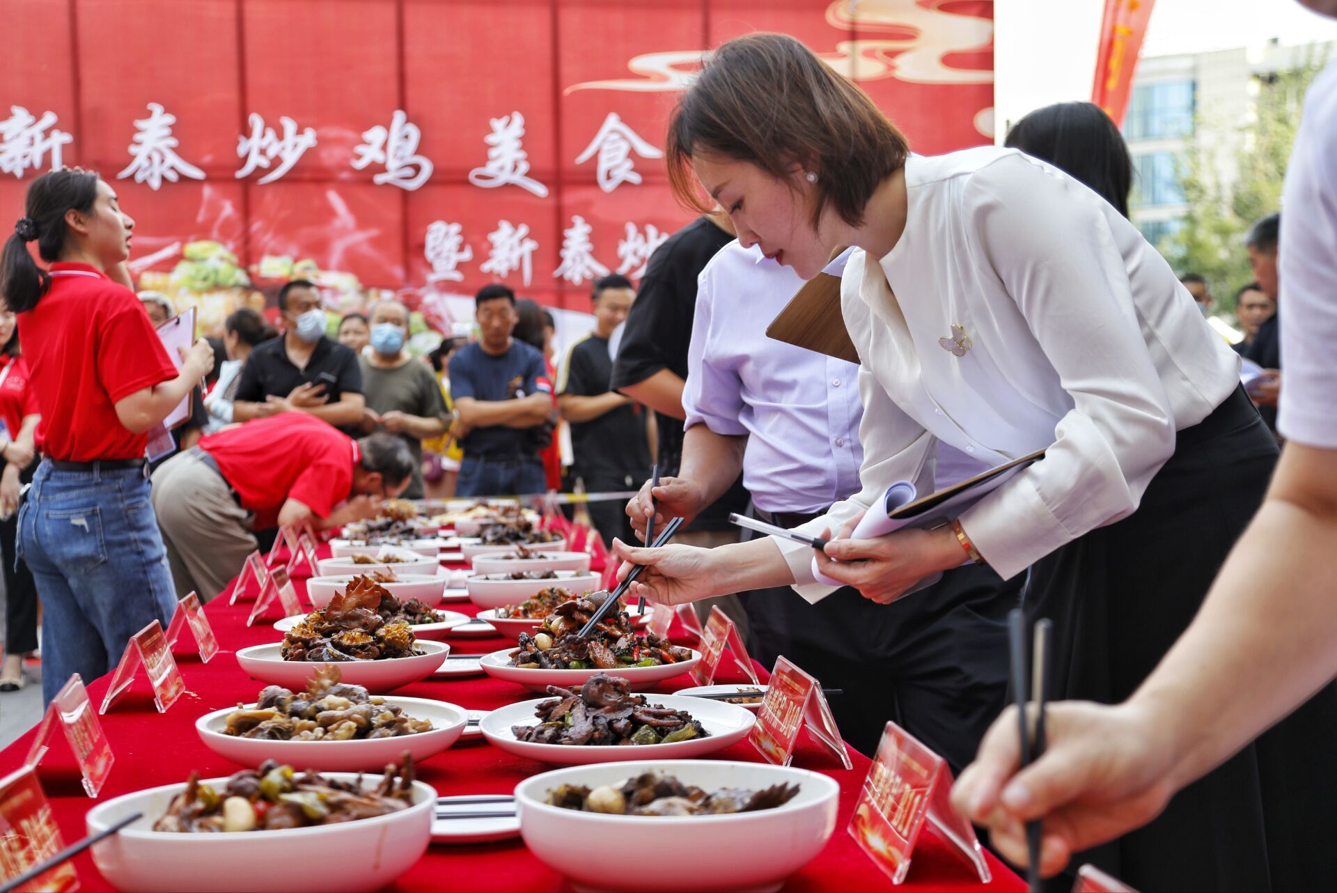 专业评委们一一品尝菜肴,通过对炒鸡的质感、口味、色泽等方面的综合评判,对每道炒鸡进行评分。经过激烈角逐,金穗大酒店、名田餐饮等前60名被评为“新泰炒鸡必吃榜上榜餐厅”,前20名入围决赛。