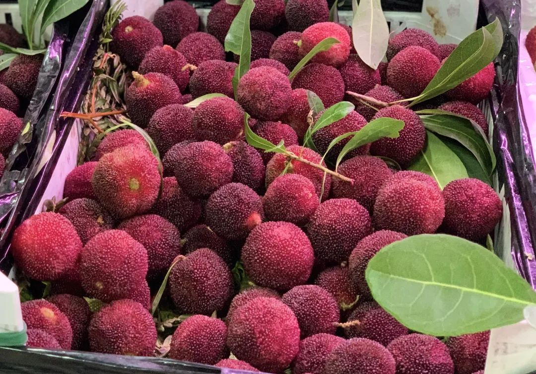 一口下去,汁水四溢,一堆堆红的发紫的杨梅在市场上也吸睛十足。老板娘一边娴熟的帮顾客挑选、装袋、称斤,一边介绍着,“仙居杨梅刚上市,基本是最好的了,价格比去年便宜多了,去年要到七八十块钱,今年只卖二三十块钱一斤,销量也好多了。”仅记者观察的10分钟左右时间,就已经卖出了十几斤。老板娘招呼顾客间隙,还不忘科普挑选门道,“要挑硬一点的,颜色深红一点的,才好吃。”