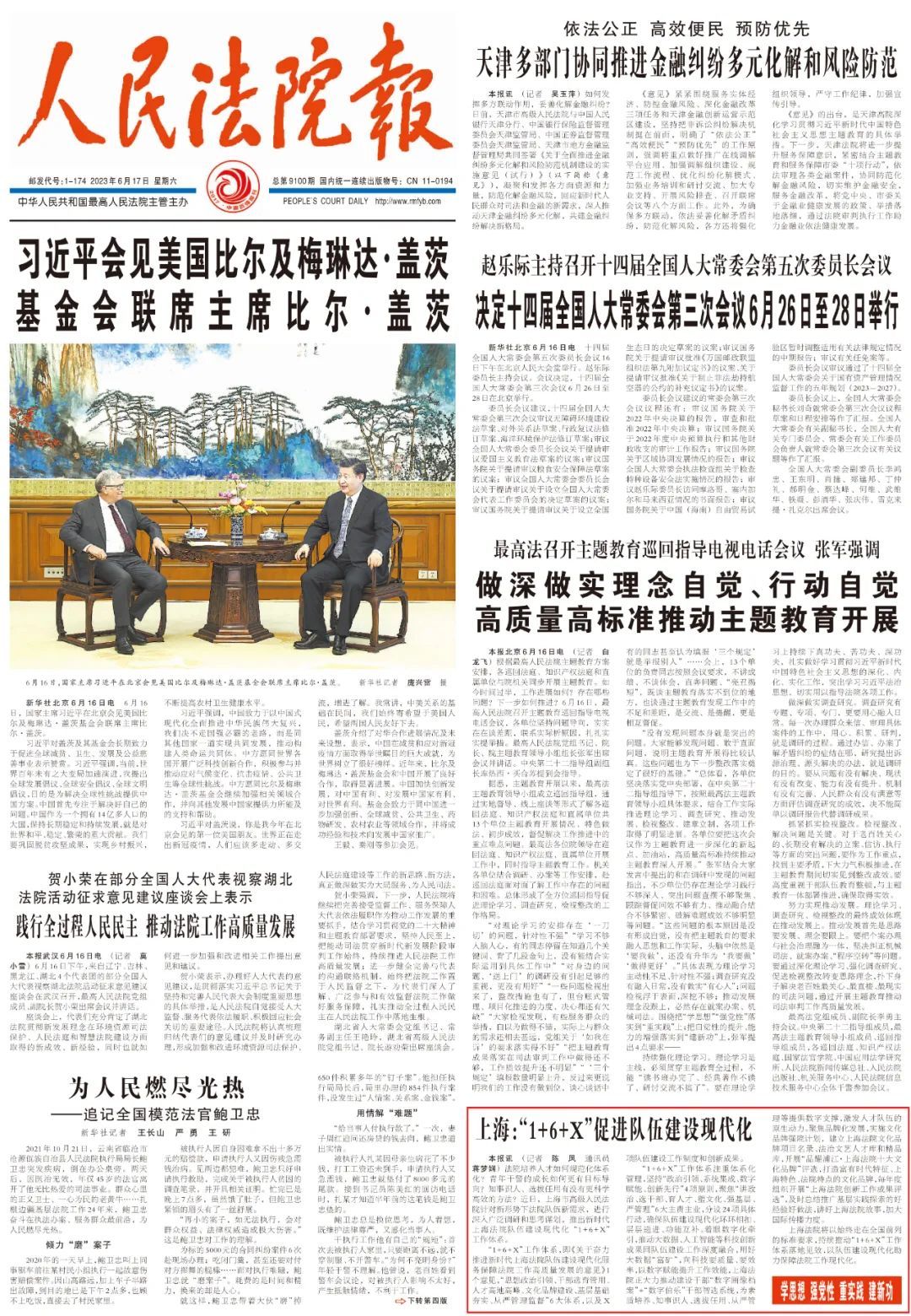 上海法院将以始终走在全国前列的标准要求,持续推动“1+6+X”工作体系落地见效,以队伍建设现代化助力保障法院工作现代化。