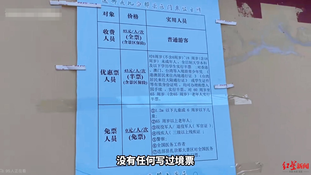 但他拍摄到的扎尕那门票收费标准中,并没有“过境票”一项。他认为,景区应该把“过境票”的规则解释得更清晰一些,以免有路过的行人不知道门票可以退,没有下车旅游,却还是花了门票钱。