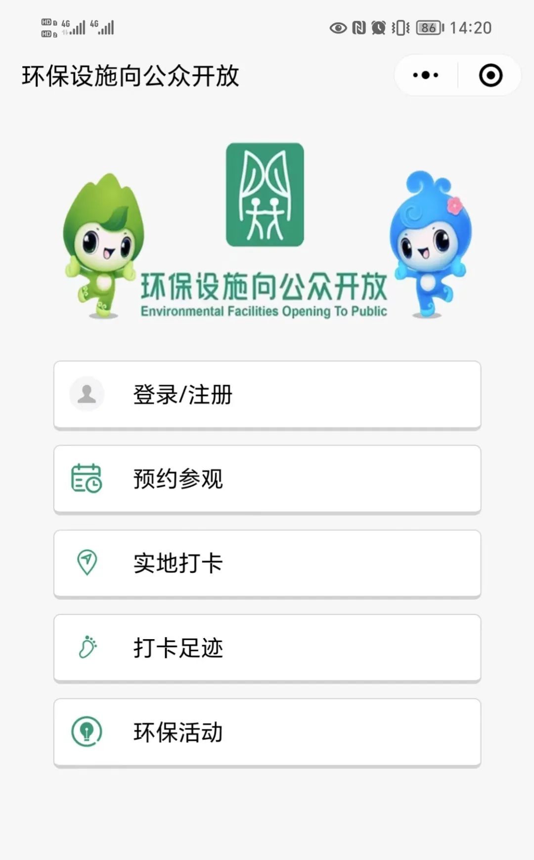 公众可在微信中搜索“环保设施向公众开放”小程序(或识别下方小程序码),注册后进行线上预约。