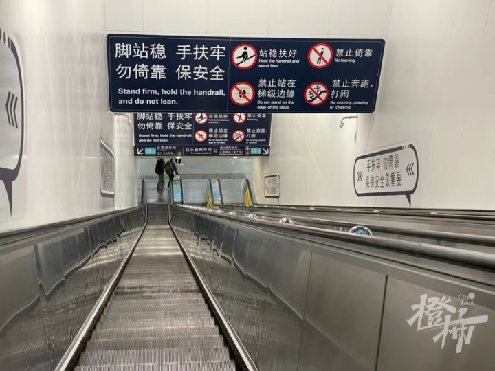 地铁站人流量巨大,电扶梯运行速度通常为0.65米/秒,比商超、医院、住宅等处的电扶梯(0.5米/秒)快30%。在高速运行的电扶梯上行走,是容易摔伤的危险行为。