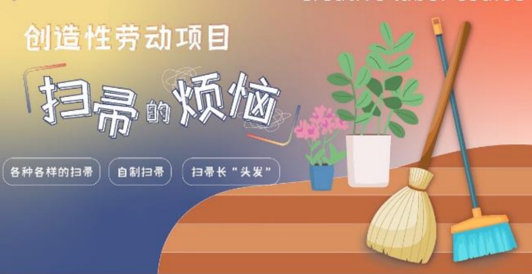 《清洁》是创造性劳动课程里学生最感兴趣的项目任务群之一。为什么角落里的垃圾那么难扫?为什么垃圾总是从扫帚下逃掉?同学们围绕“如何快速打扫楼梯?”这一问题展开了团队竞赛。