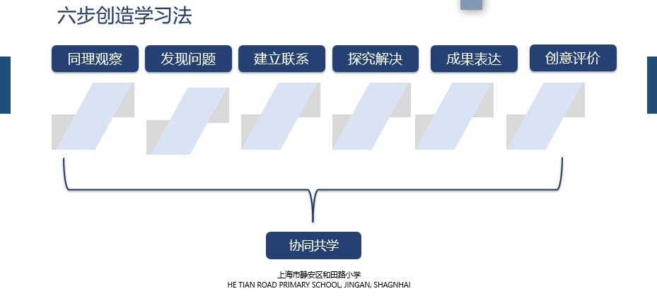 在解决劳动中的实际问题时,思考方式很重要。和田路小学提出了六步创造学习法,这是创造性课程运用的主要学习方法,即“同理观察—发现问题—建立联系—探究解决—成果表达—创意评价”,六个研究环节引导学生形成主动思考和运用创新思维解决问题的习惯,从而培养学生的批判性思维、创造性思维、有效沟通以及有效协作等四项核心能力。