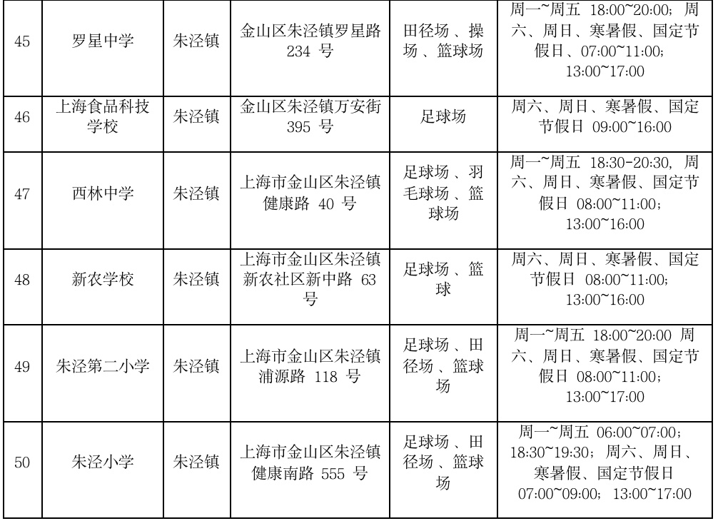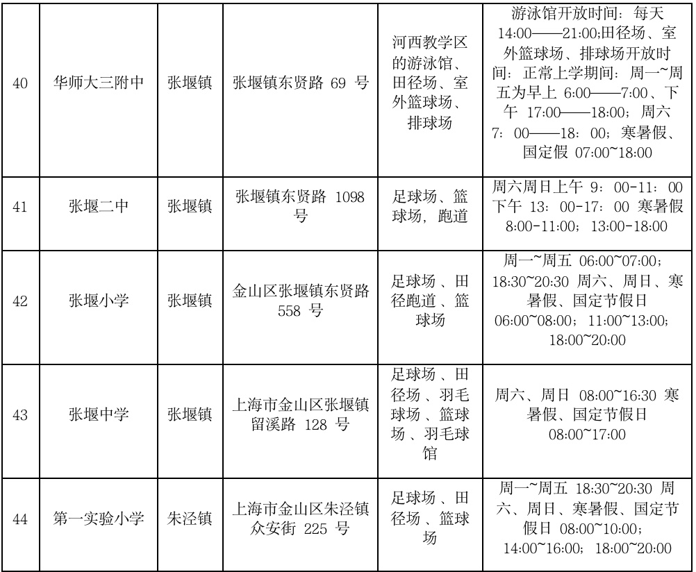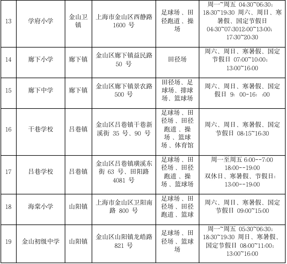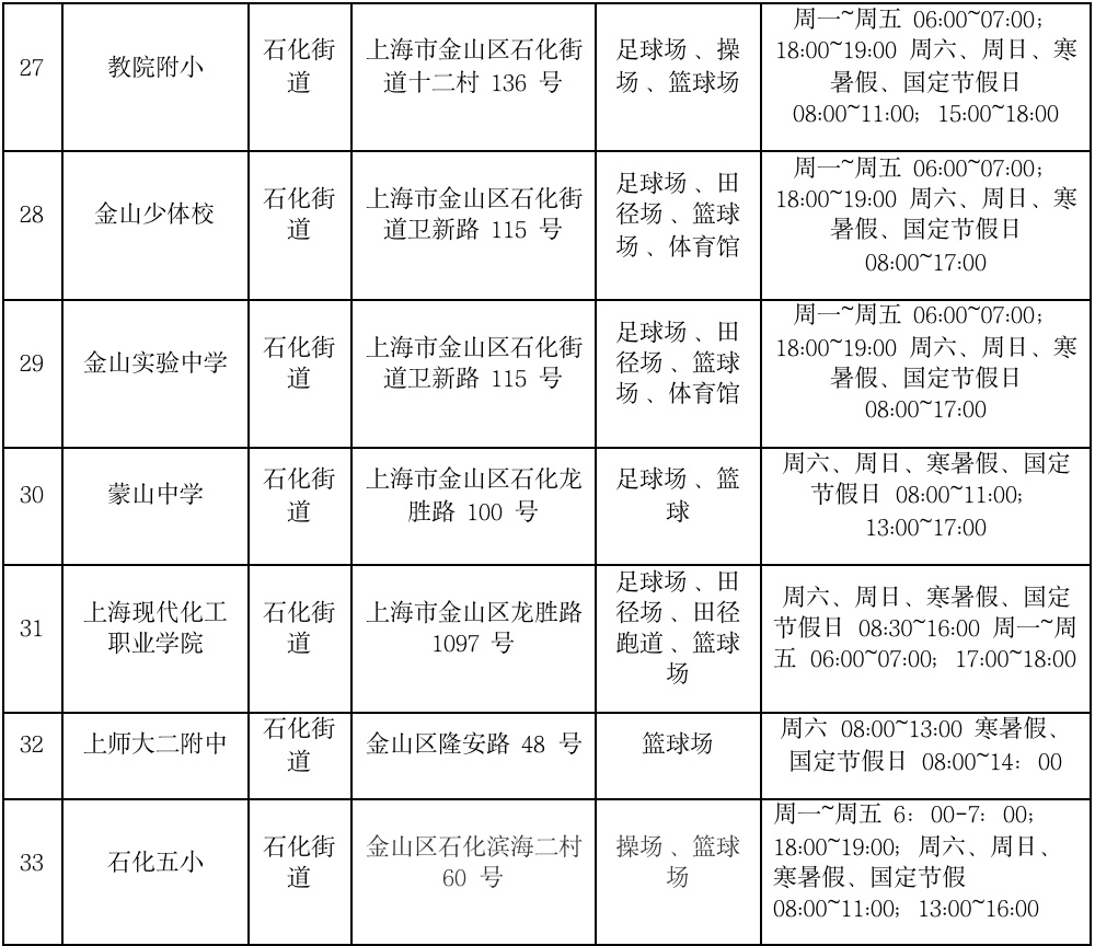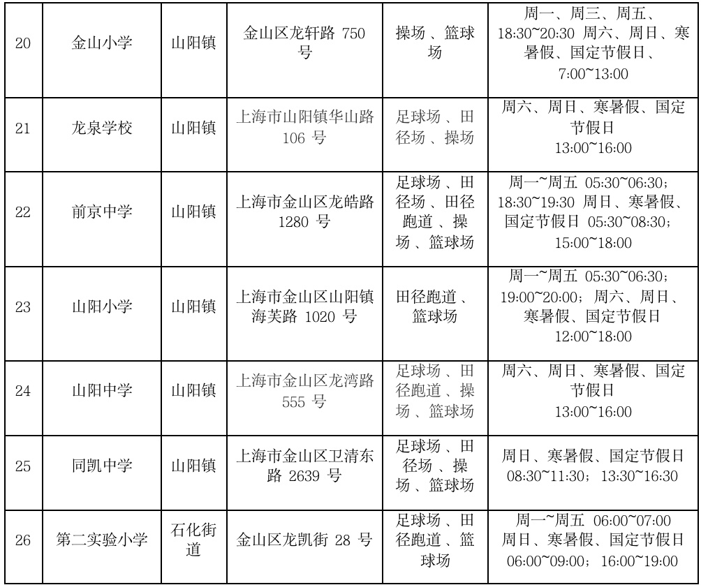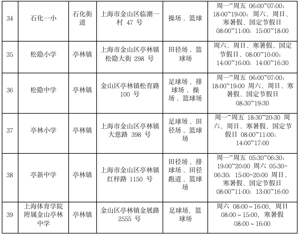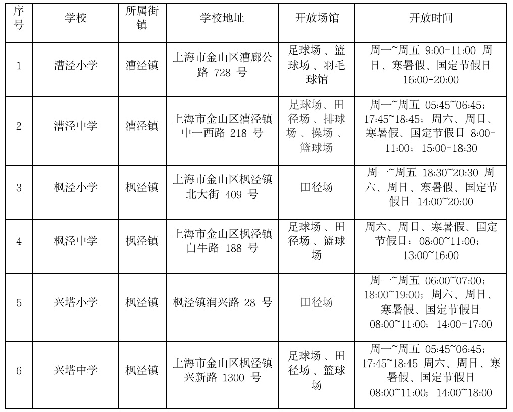 金山区学校场地开放信息统计表