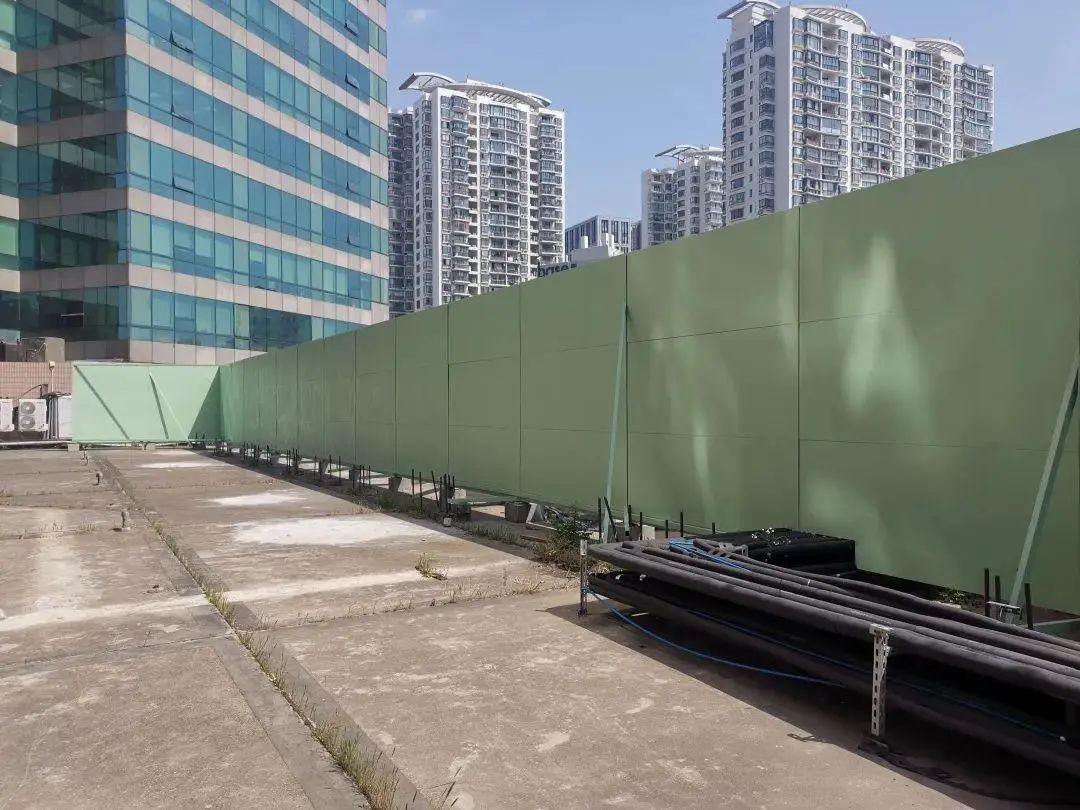 安装过程中,为了最大化降低空调外机的工作噪音,施工方与专业隔音公司相互合作,前期通过“点对点”的对比测试收集噪音分贝后,在不影响居民视线、采光和有效降低噪音的最佳位置处安装了近30米宽通风、吸音、隔音为一体的专业板材,从而减轻了噪音对居民的影响,保证了居民的正常生活。