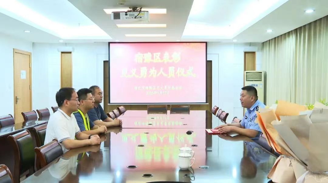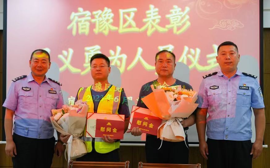 6月17日下午,丁后超和万惟清两位下水救人的英雄获得了宿豫区见义勇为基金会的表彰。