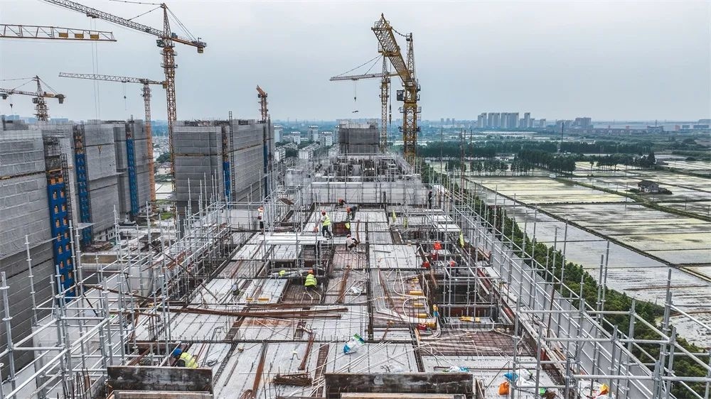 近日,在位于枫泾镇枫阳路34-01地块动迁安置房项目(枫荷景苑)现场,建设中的安置房小区已初现雏形。工人们在各自工作岗位上进行钢筋绑扎、模板支护等施工。“眼下,小区大部分住宅楼主体结构已完成至14~16层,部分住宅楼主体结构已完成封顶,实现了项目时间过半、任务过半。”据上海枫枫房地产置业有限公司总经理卫桂良介绍,项目正按照原定计划顺利建设,预计将于2024年年底完成交付。