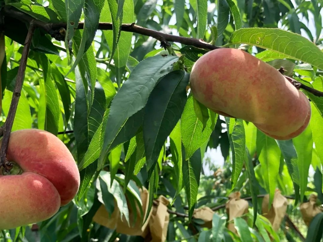 近日,在吕巷水果公园,前两年新引进的早熟蟠桃品种——瑞潘13号目前已抢“鲜”上市,相较往年将成熟期提前了整整一个月,让市民提早品尝到蟠桃的美味。