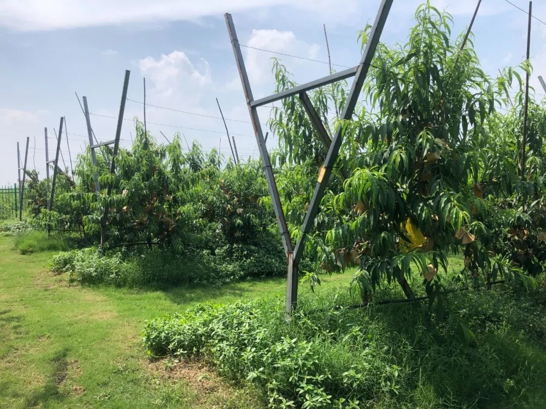 记者在吕巷水果公园看到,成排的蟠桃树上,挂满了累累硕果,果形扁平,果皮已泛红,在绿叶中若隐若现,散发出淡淡的果香。