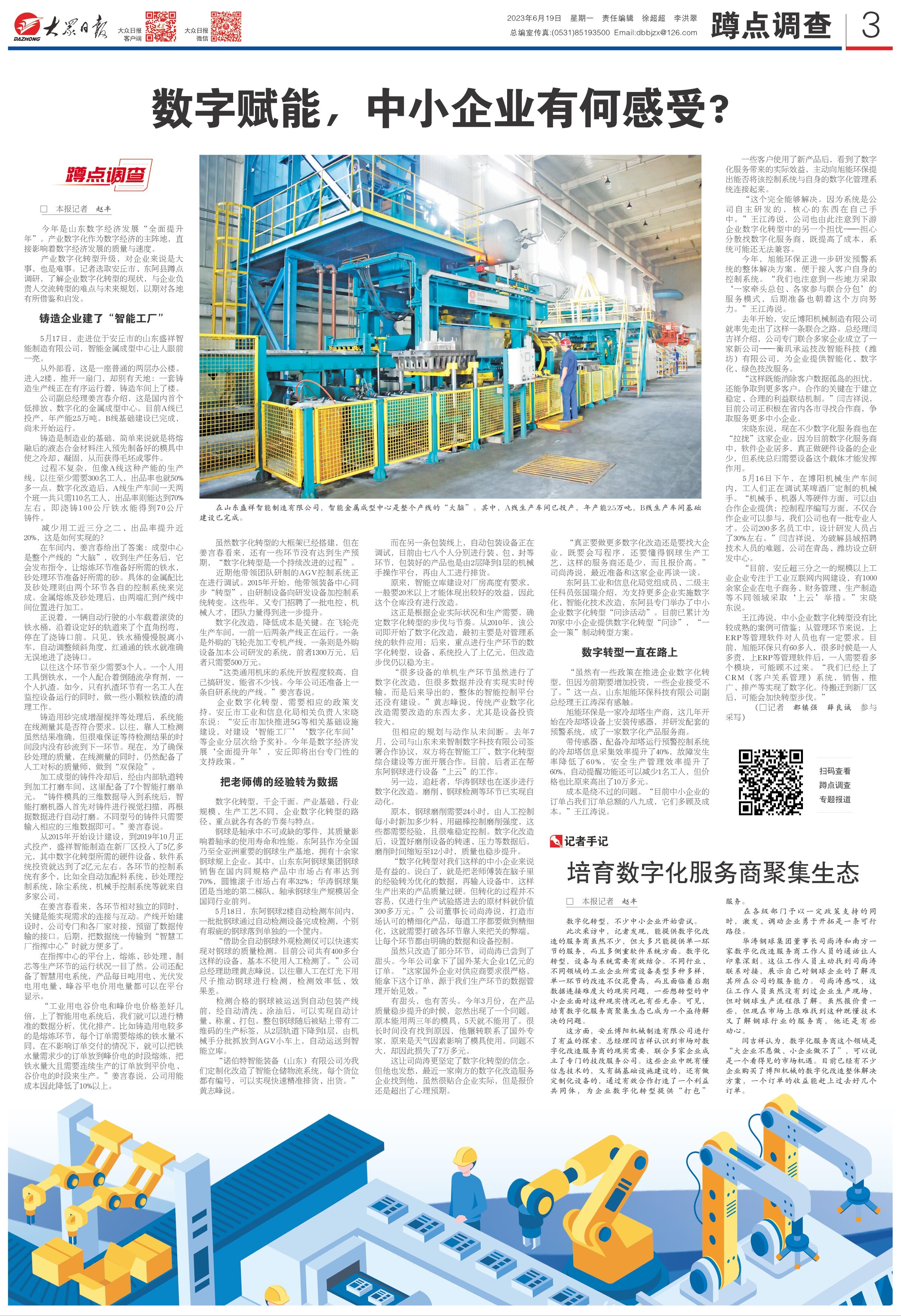 企业数字化转型,需要相应的政策支持。安丘市工业和信息化局相关负责人宋晓东说:“安丘市加快推进5G等相关基础设施建设,对建设‘智能工厂’‘数字化车间’等企业分层次给予奖补。今年是数字经济发展‘全面提升年’,安丘即将出台专门性的支持政策。”