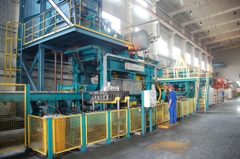 从外部看,这是一座普通的两层办公楼。进入2楼,推开一扇门,却别有天地:一套铸造生产线正在有序运行着,铸造车间上了楼。