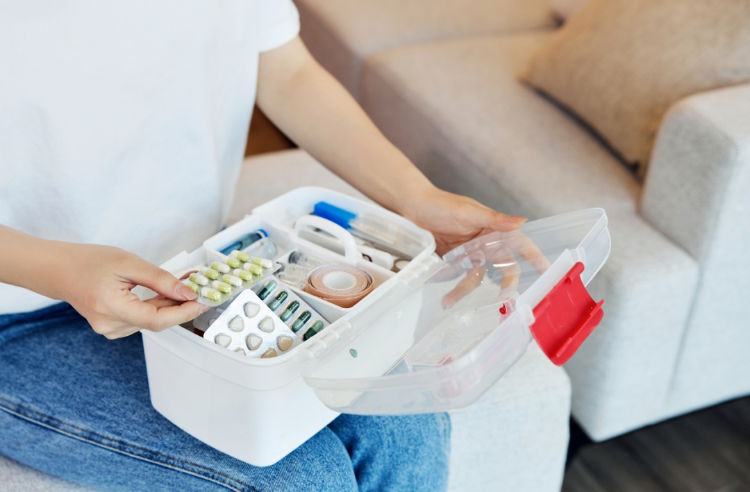 建议针对常见病和慢性病来备药。比如,配备针对发热、流涕、鼻塞等感冒症状,以及咽干咽痛、咳嗽咳痰、腹泻等药物,抗过敏药、跌打损伤外用药等,以及1~2个月用量的慢性病用药。