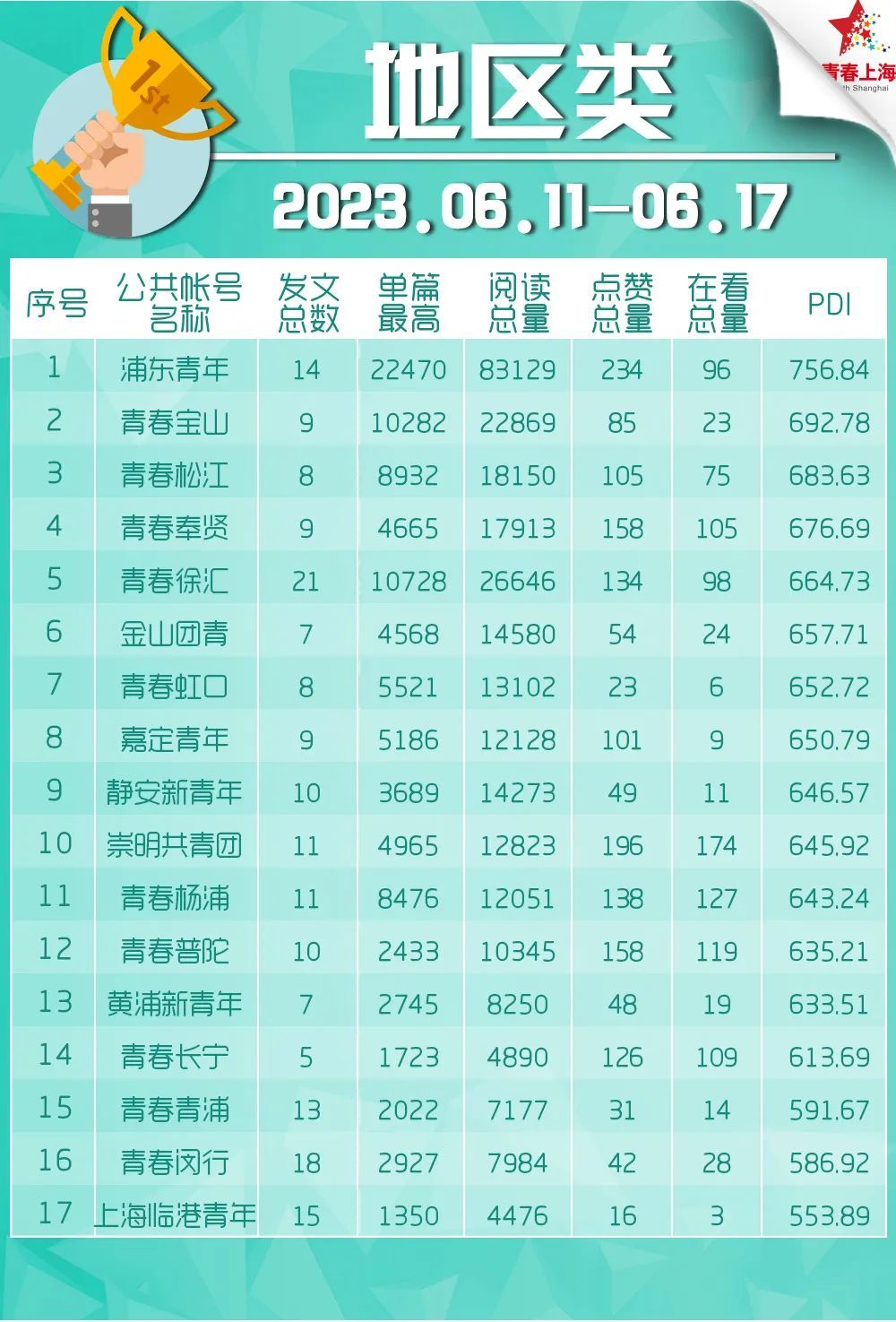 上海共青团微信公众号影响力排行榜