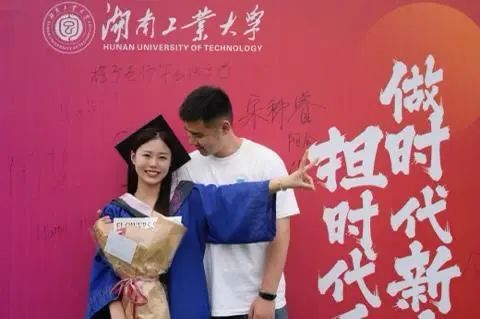 在相互支持与鼓励中,胡同学第二年考上了湖南工业大学,男朋友在考研的同时还争取到一份不错的工作,于是选择了在家乡就业。胡同学说:“可以说考研这条路上如果没有他的陪伴,我是坚持不下来的,所以毕业典礼对我们来说意义非凡,他也是请年假来到了湖南。”