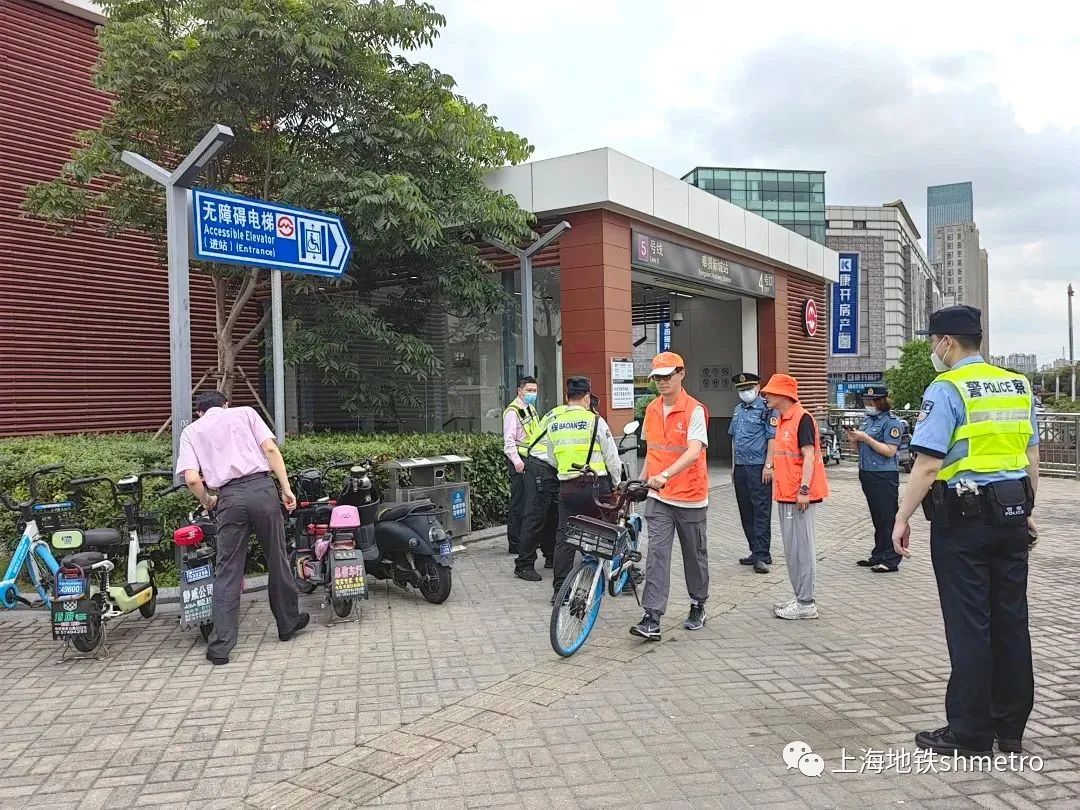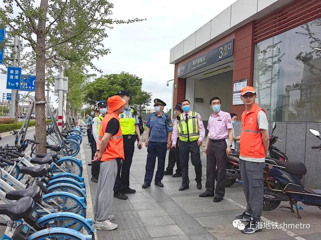 为消除非机动车、单车违规停放给市民出行、交通管理带来的安全隐患,进一步提高群众交通安全意识,近日,1号线延长路站、5号线奉贤新城站结合车站实际,突出管控重点、强化整治措施,联合民警、执法大队、街道突击开展专项整治工作,净化车站出入口交通秩序。