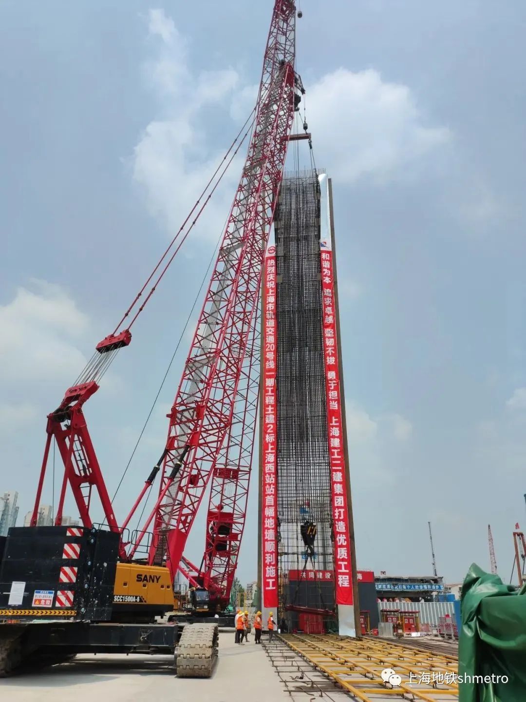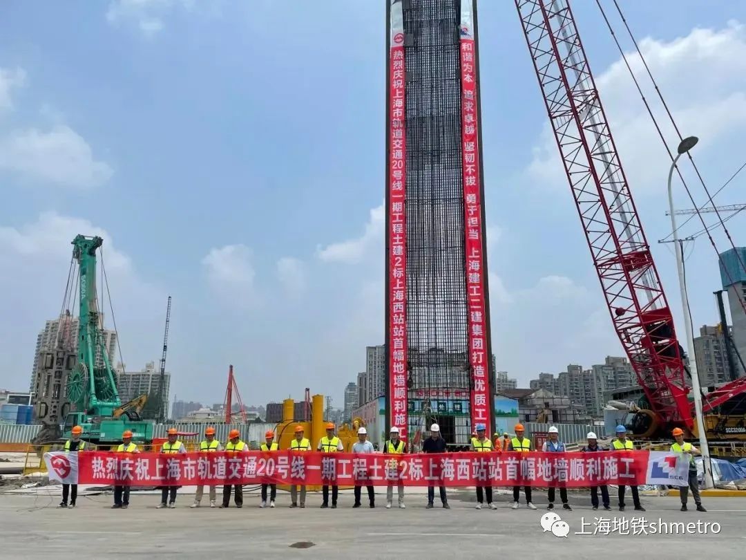 6月14日,伴随着履带吊的隆隆作响声,由上海建工二建集团承建的上海轨道交通20号线一期工程西段2标上海西站站首幅地下连续墙钢筋笼平稳入槽,标志着该站正式进入实质性施工阶段。