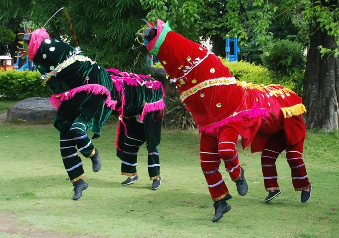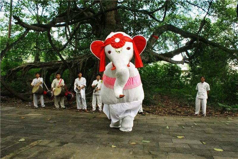 傣族白象舞、马鹿舞是傣族民间用于喜庆祈福场合的拟兽道具舞。每逢泼水节等民间节庆活动,傣族群众都要扎制白象、马鹿道具跳舞,以祈求上苍保佑,风调雨顺、国泰民安。