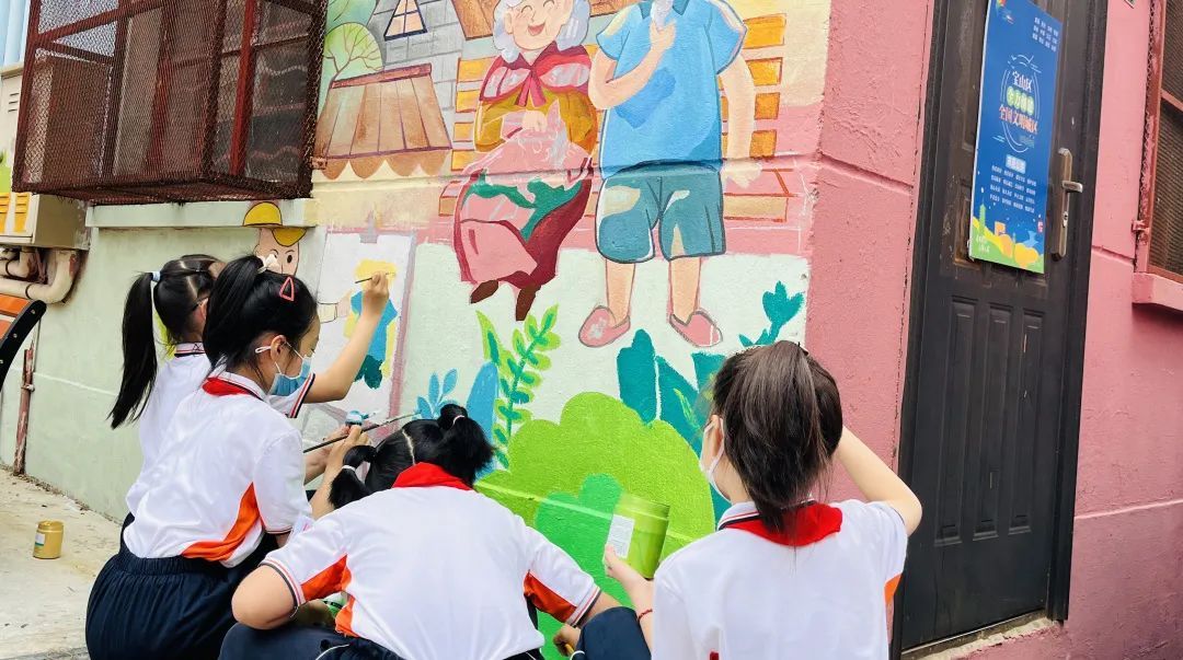 密山二村居民区党总支:针对老百姓对优秀居委服务的期待,对温馨社区环境的渴望,党总支联合网格内共建单位—广育小学党支部,以“美好社区先锋行动”活动为契机,共绘彩绘墙,扮靓社区,及时回应群众诉求。