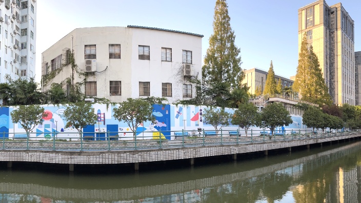 宝钢五村居民区党总支:去年,后河沿北侧公共空间微更新项目在宝钢五村落地,经过改造,河道北侧构成了一道靓丽风景线。相比之下,坐落于河道南侧的宝钢退管会及周边空间显得格格不入,由于建造年代久远,出现路面不平,多处破损,违章搭建将河边道路堵住,老市河南岸便成了人迹罕至的闲置地带。