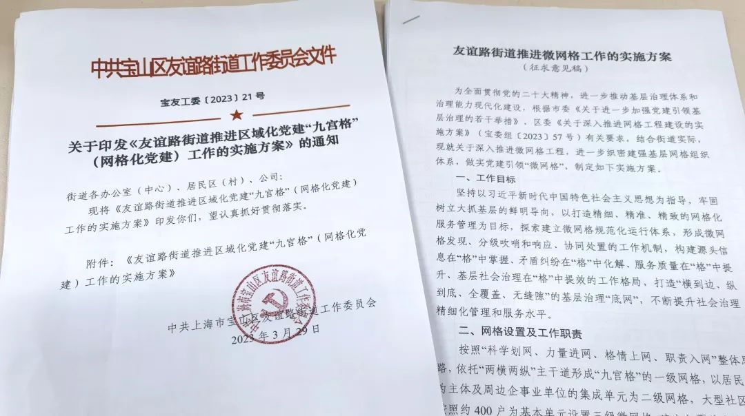“九宫格三街区”作为友谊路街道党建网格和行政网格并行的管理模式,近年来为街道各项工作提供了有力支撑。今年,根据市委《关于进一步加强党建引领基层治理的若干举措》、区委《关于深入推进网格工程建设的实施方案》(宝委组〔2023〕57号)有关要求,街道党工委结合实际制定完善《友谊路街道推进区域化党建“九宫格”(网格化党建)工作的实施方案》《友谊路街道推进微网格工作的实施方案》,按照“科学划网、力量进网、格情上网、职责入网”整体思路,依托“九宫格三街区”工作架构,建立起覆盖全域的9个一级网格、38个二级网格和201个三级微网格、9大一级网格分别召开微网格工作推进会,通过建强微网格组织链条、强化微网格功能建设、夯实微网格服务阵地,着力打造“横到边、纵到底、全覆盖、无缝隙”的基层治理“底网”,进一步做实党建引领“微网格”。