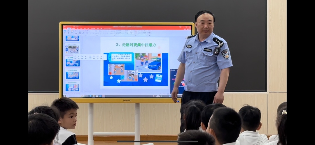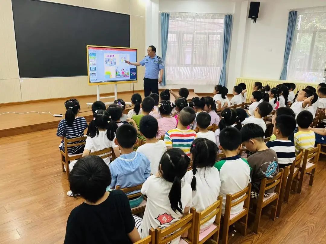 在活动中,民警们用诙谐幽默的语言,向孩子们介绍了警察的职责和使命,让孩子们对警察这一神圣的职业有了全新的认识。通过一问一答的互动环节,引导孩子们要自觉遵守交通规则,不在马路上追逐打闹。民警们还叮嘱孩子们,暑期在家中一定要注意安全,发现有火灾、触电等危险情况,要及时告诉周围的大人,并拨打 119、110。