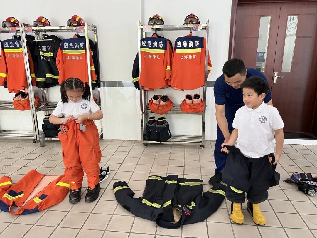 中班的孩子们则走进了消防队,零距离接触消防、体验消防、学习消防,让消防安全的“种子”在孩子们心中萌芽。