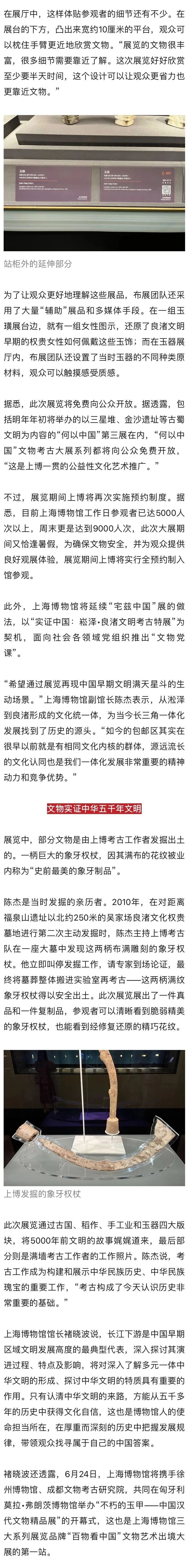据悉,此次展览汇集全国19家博物馆及考古机构,以358件/组文物,90%以上为珍贵文物,三分之一以上为首次亮相的最新考古成果,辅以各类复原器、标本、图解和数字化展陈手段,让观众沉浸式感知中华五千年文明的实证。包括此次展览和明年初将举办的聚焦三星堆、金沙川蜀文明的该系列第三展,“何以中国”文物考古大展系列将免费开放,参观者须预约参观。
