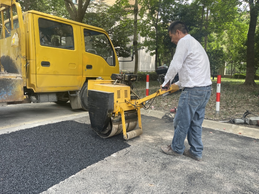 中山苑社区发现这一情况后,依托“幸福中山社区议事厅”,充分发挥协商议事作用,会同业委会、翔禧物业多次召开协商会议,并前往该路段现场勘察并制定了具体的修缮方案:将破损路面挖开,重新填充修补,铺平道路。按照哪里破损修复哪里的原则,既有针对性,又加快修补速度。6月16日,物业立即开展修补作业,在施工期间,施工人员在最小范围内设置路障管制,最大程度降低因施工造成周边居民出行不便。经过一天一晚的时间,道路修复工作顺利完成。