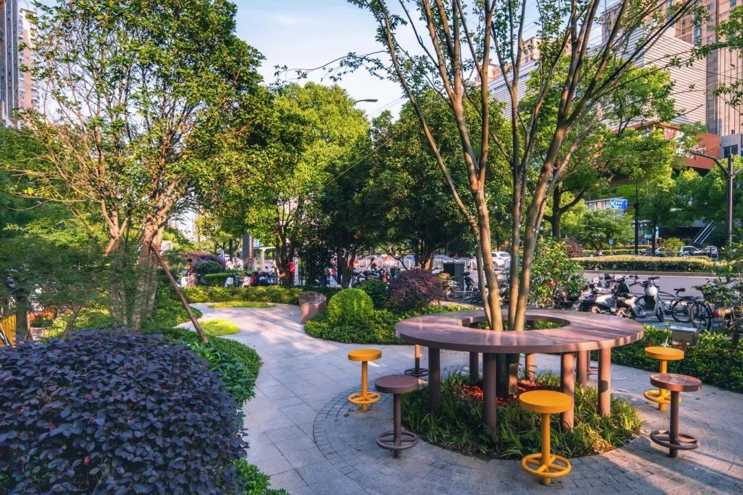 这些移步异景的微景观群通过设计师的巧思,以“针灸式”的手法,镶嵌在这条长700米的狭长路段,最终勾勒出“荟水天中”美丽街区的独有景致,有效增加了百姓休闲、憩息、活动的绿色共享空间,成为走得进去、坐得下来的街角会客厅。