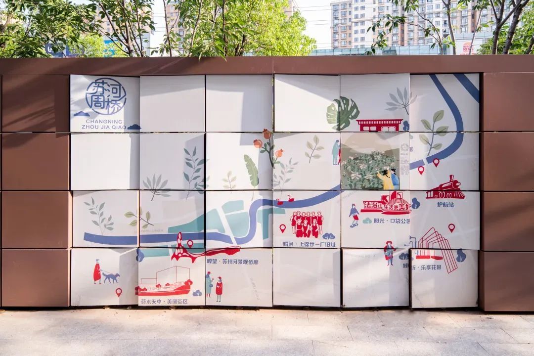 “荟水天中”与长宁路沿线的镜花园、乐享花园等口袋公园以及屹立在苏州河畔的街区艺术装置,共同绘就了“一河十景”苏河靓丽风景线,成为街道的“精美项链”和“靓丽名片”,让“苏河周桥”的“15分钟社区美好生活圈”更加丰富多彩。