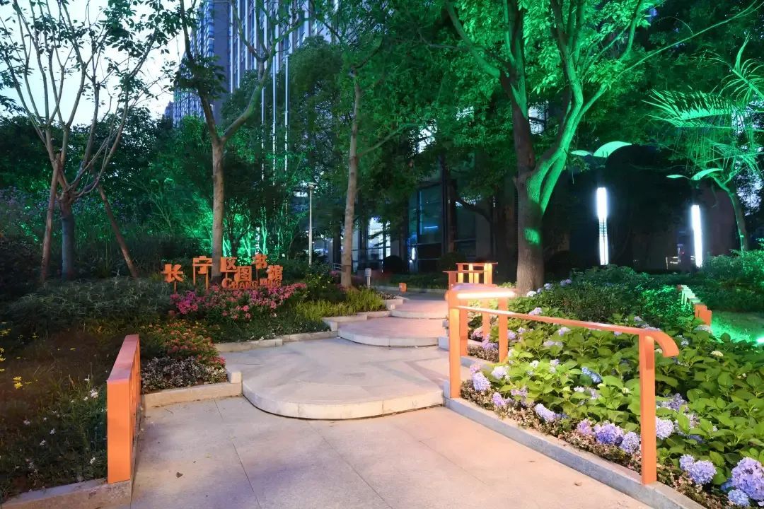 沿着天山路天中路拐角的“书山勤径”拾级而上,富有书香气息的长宁图书馆跃然眼前。这里原是一处密闭的绿色空间,通过此次打开、导入,不仅营造了通透的街区视角效果,同时也释放出长宁图书馆敞开环抱、亲近市民、热爱阅读的美好愿景。