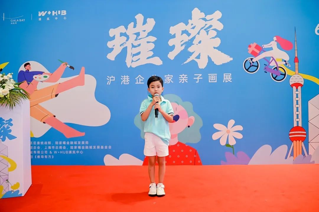 6月17日下午,「璀璨」“沪港企业家亲子画展”开幕式于上海陆家嘴瑞明大厦2F成功举办。本次画展由浦东新区区委统战部、陆家嘴金融城发展局指导,沪港社团总会、上海市总商会、陆家嘴金融城发展基金会支持,中船置业有限公司&W+HUB浦岚中心主办,教育节目《教导有方》联合发起。