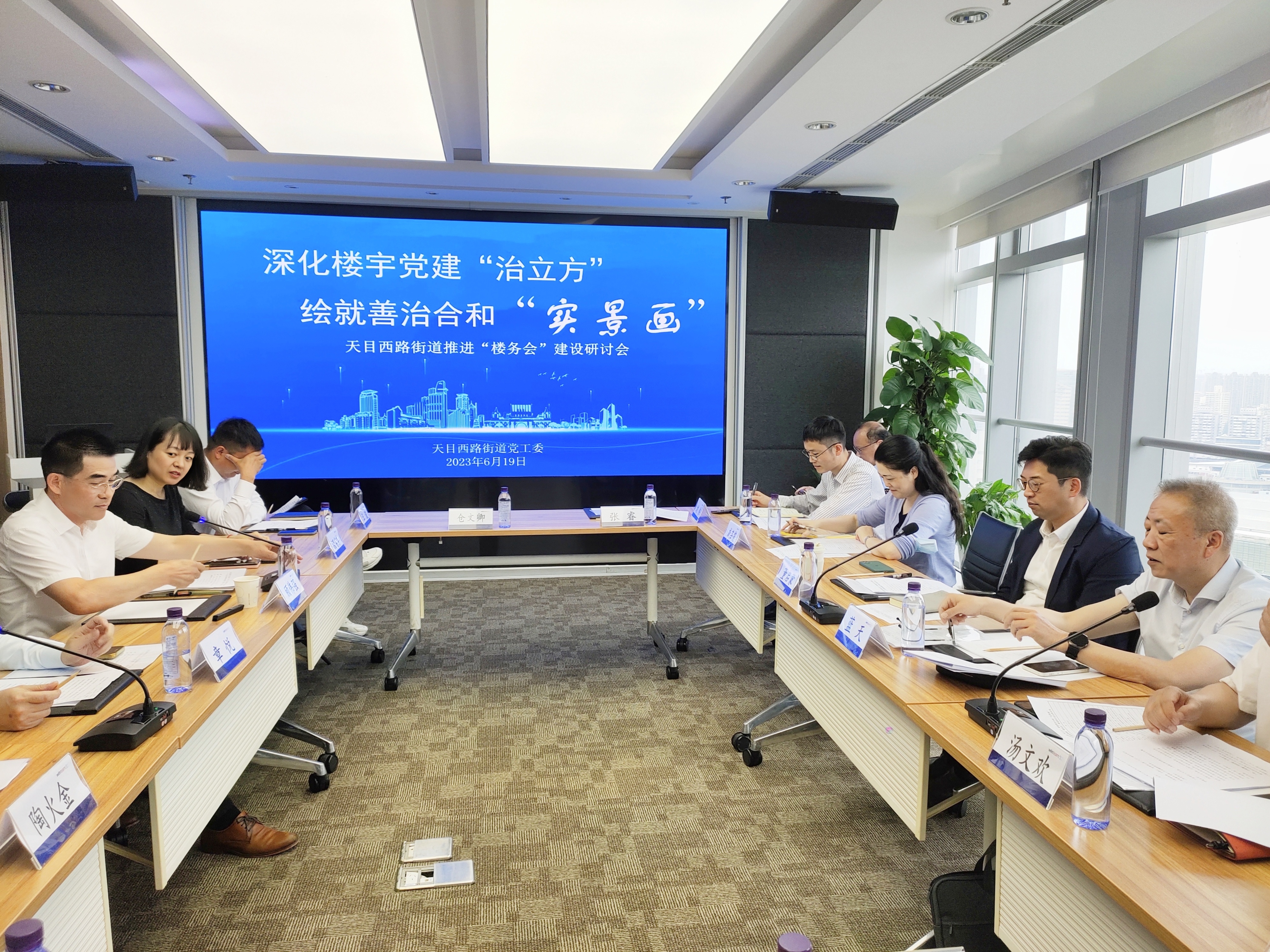 t6月19日,天目西路街道党工委召开“深化楼宇党建‘治立方’,绘就善治合和‘实景画’”——“楼务会”建设研讨会,总结、推广辖区楼宇事务委员会(简称“楼务会”)在党建引领下开展自治、共治、共享管理服务的经验。
