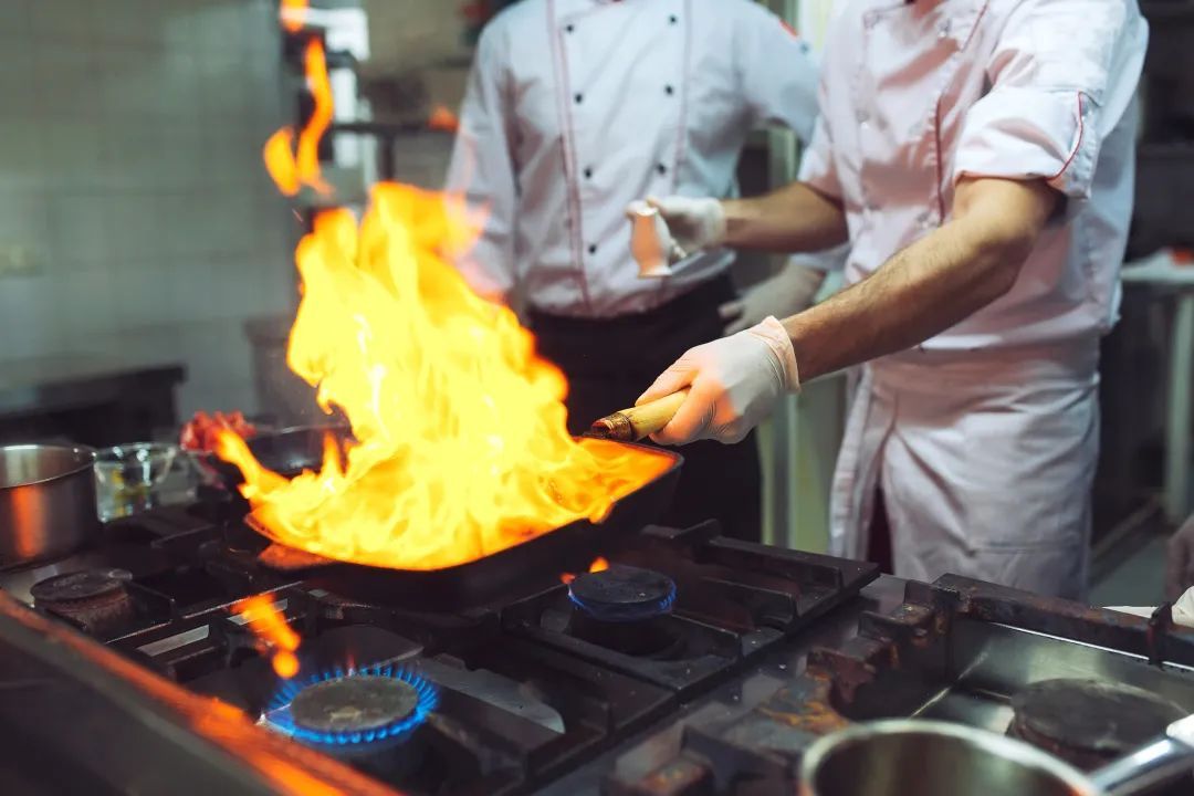 厨房使用明火不离人,烹饪过程中必须做到人离火熄、电断、气关。各种煤气炉灶点火时,不得使用火柴,打火机或纸张直接点火。