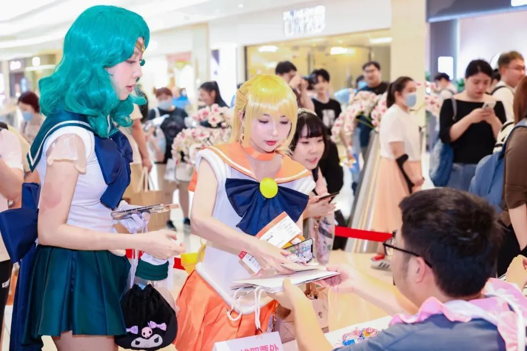 不少观众带着IP周边产品,如《美少女战士》的变身棒、《数码宝贝》的进化器“神圣计划”、各种漫画玩偶手办等等前来观影。还有观众特意Cos成自己喜爱的角色形象,与同好们现场交流,实现了一次极富仪式感的线下观影。