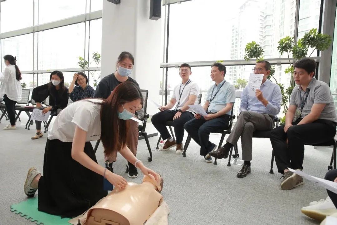 6月16日,南商中国总行本部举办“急救知识培训”活动,邀请黄浦区红十字会救护师资团队,以现场授课方式开展普及性应急救护培训,大力普及急救知识和技能,倡导科学急救方法。培训分为理论教学和实践操作两个部分,培训老师用生动有趣的表述方式,分别从现场救护原则、心肺复苏等初级应急救护的核心知识与技能等方面,为员工们进行了通俗易懂的讲解,并现场示范心肺复苏的操作流程、体外自动除颤仪(AED)的使用方法、气道梗阻的处置方法等。通过本次培训,员工们亲身参与实操训练并获得了急救培训证书,进一步提升了安全应急意识和自救互救的能力,营造了“人人学急救,急救为人人”的良好氛围。参训人员纷纷表示,应急救护知识学习非常有必要,不仅能广泛应用到生活中的各种场景,还进一步提升了大家对生命的敬畏感和主动施援的社会责任感。