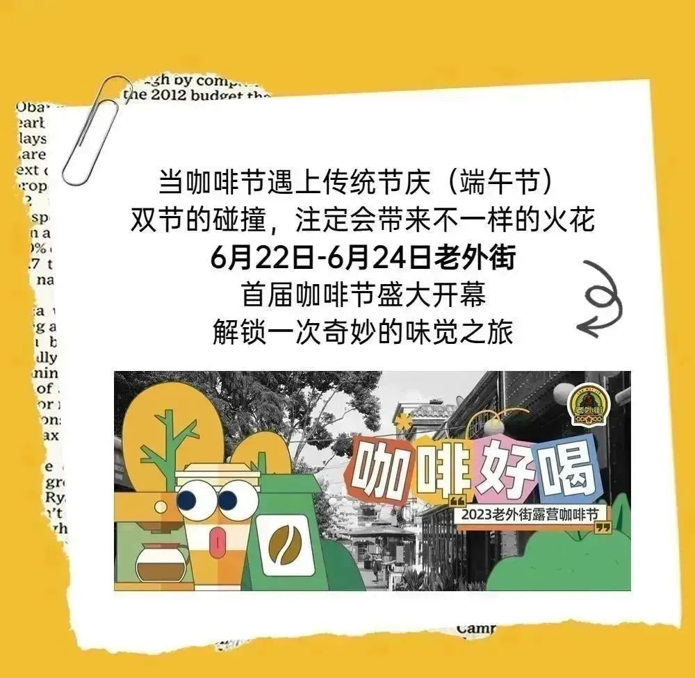 当咖啡节遇上传统节庆(端午节),双节的碰撞,注定会带来不一样的火花。6月22日-6月24日,老外街首届咖啡节盛大开幕。来这里,一站式打卡30+咖啡品牌,解锁一次奇妙的味觉之旅。