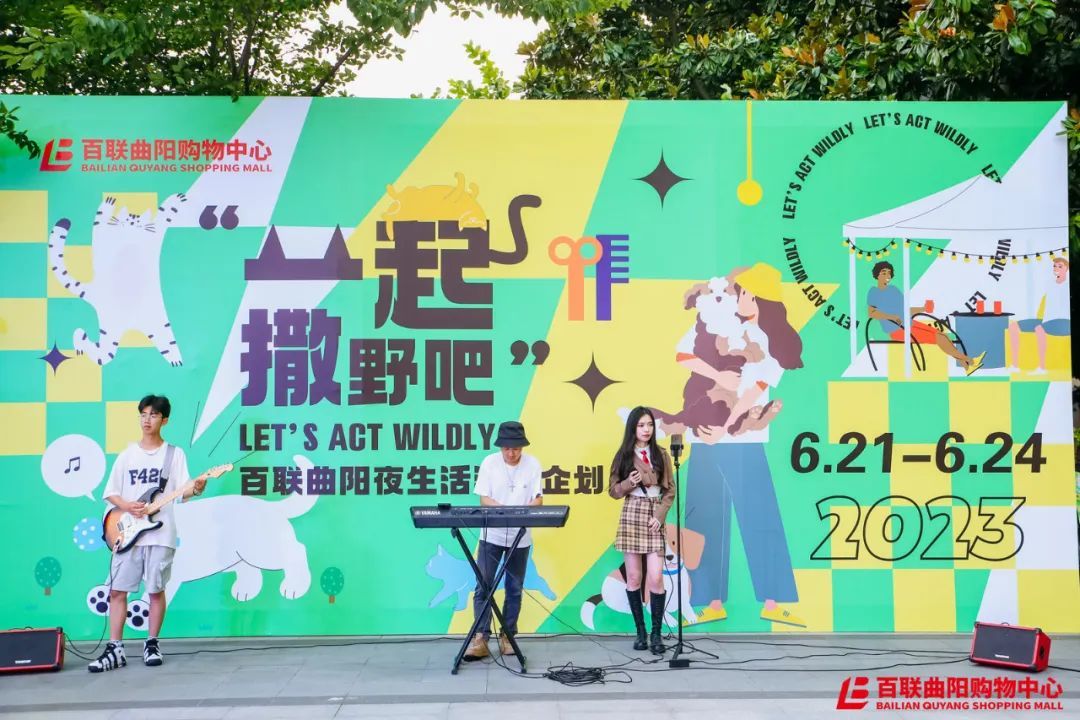 本次“一起撒野吧”夜生活节活动为期四天(6月21日—24日),涵盖音乐、美酒、萌宠等跨界内容,结合玩趣市集、乐队表演、露天影院、抖音直播等潮流玩法。21日晚六点,专业乐队现场演出,开启本次夜生活活动的篇章。